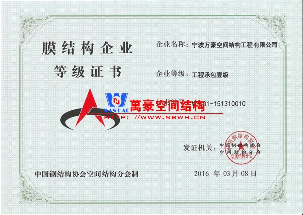 膜结构工程总承包特级(设计、制作、安装)资质,钢结构工程二级资质