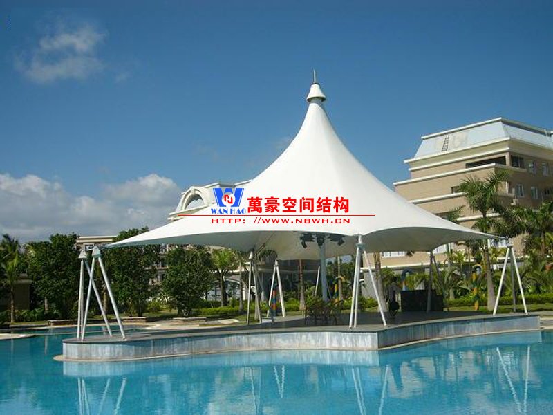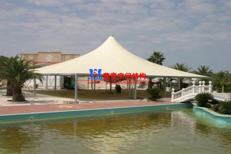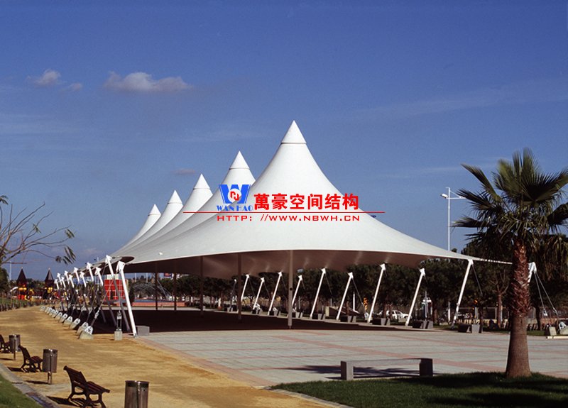 ,一般指的是以张拉膜结构做为顶棚,钢结构做为立柱制作而成的凉亭。通常是建筑在路旁供行人休息而用,因其造型轻巧,布设灵活而被广泛应用在园林建筑之中。