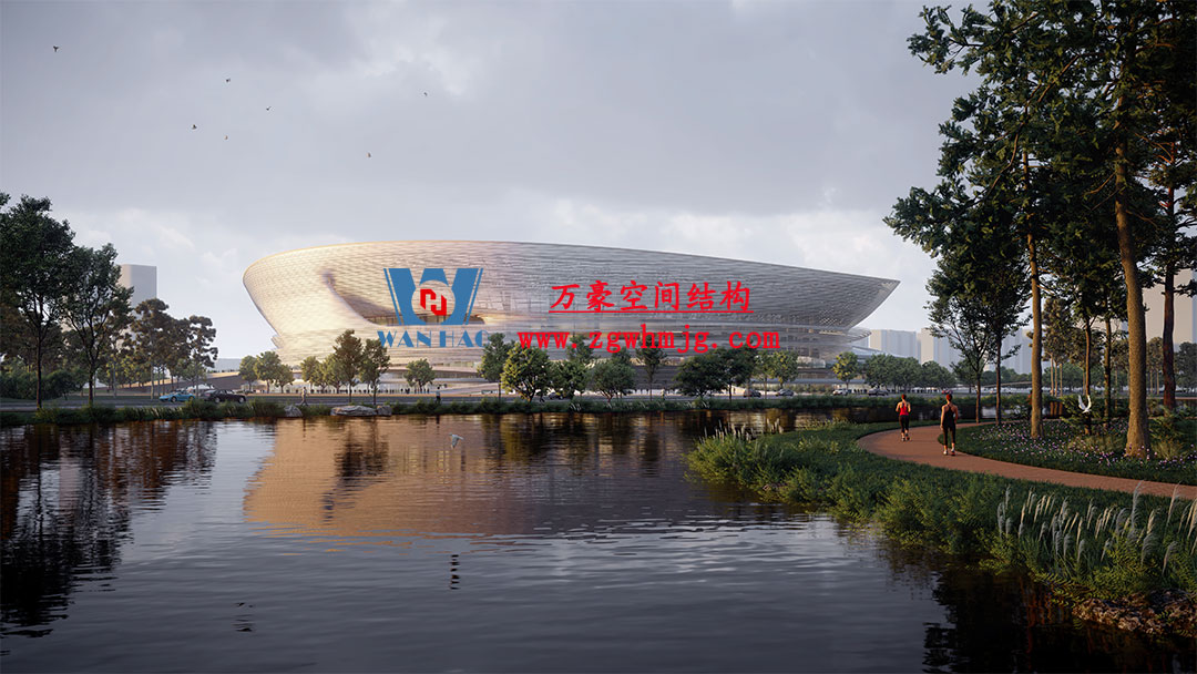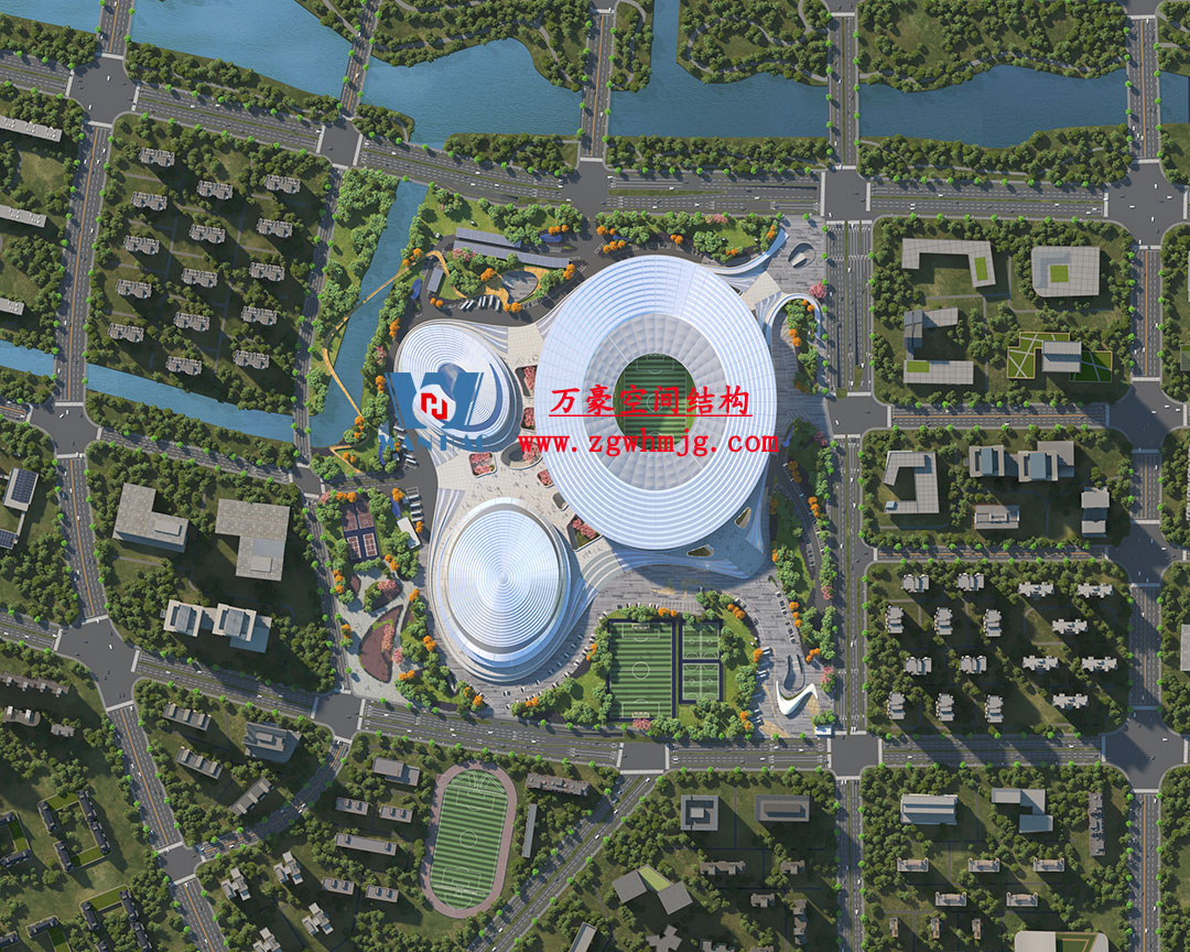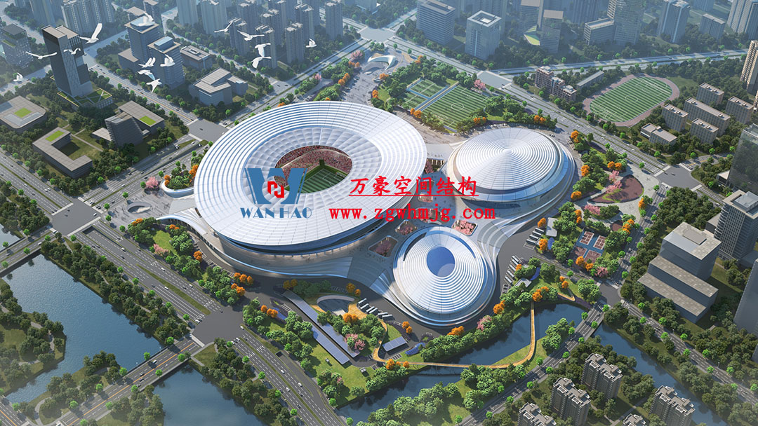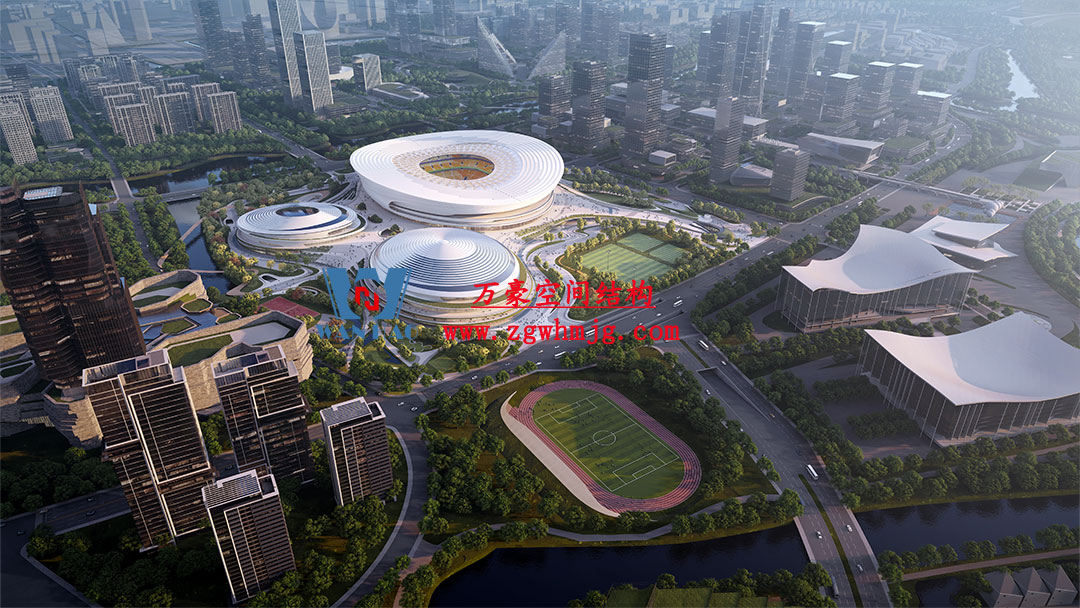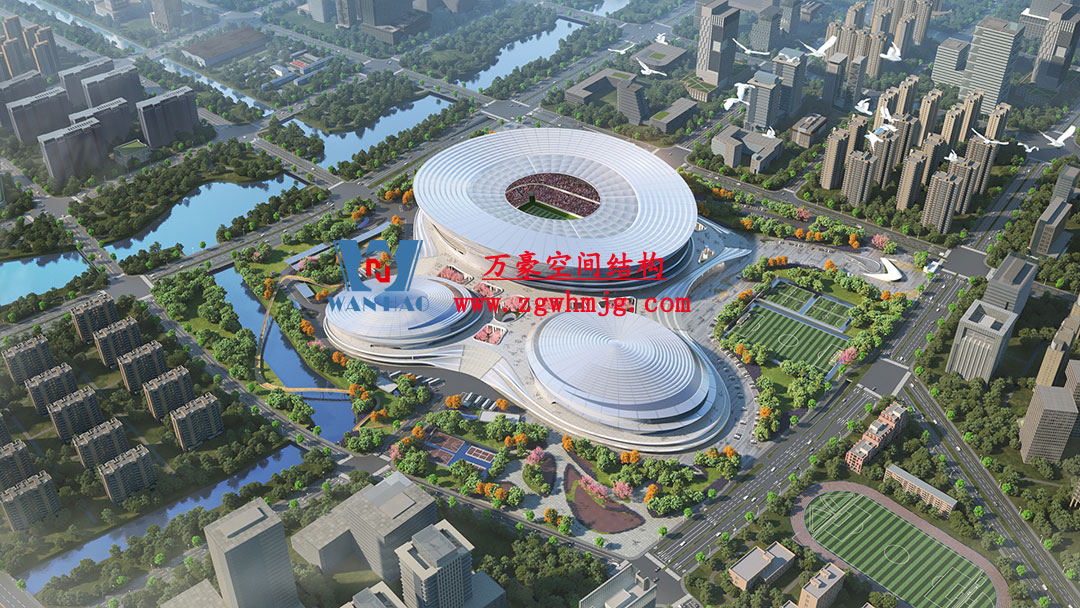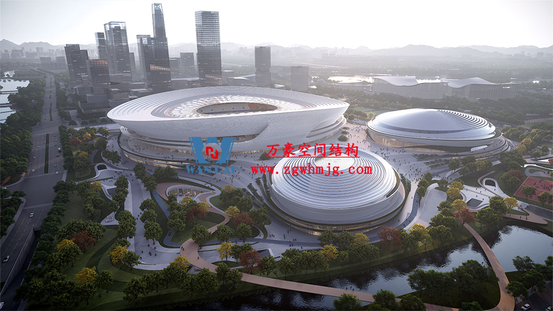 杭州余杭国际体育中心,位于浙江省杭州市余杭区杭州未来科技城.该项目二次钢构用钢量9000吨,PTFE膜展开面积40000平方米,是长三角最大覆壳式膜结构体育建筑。