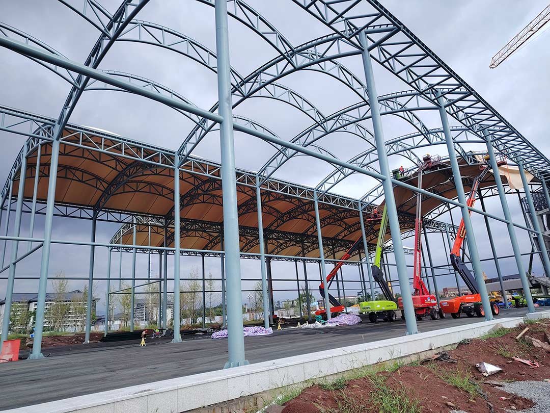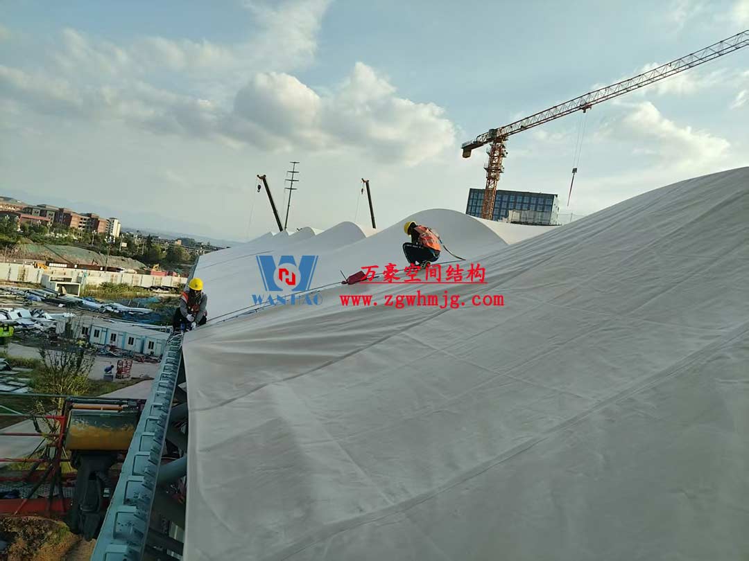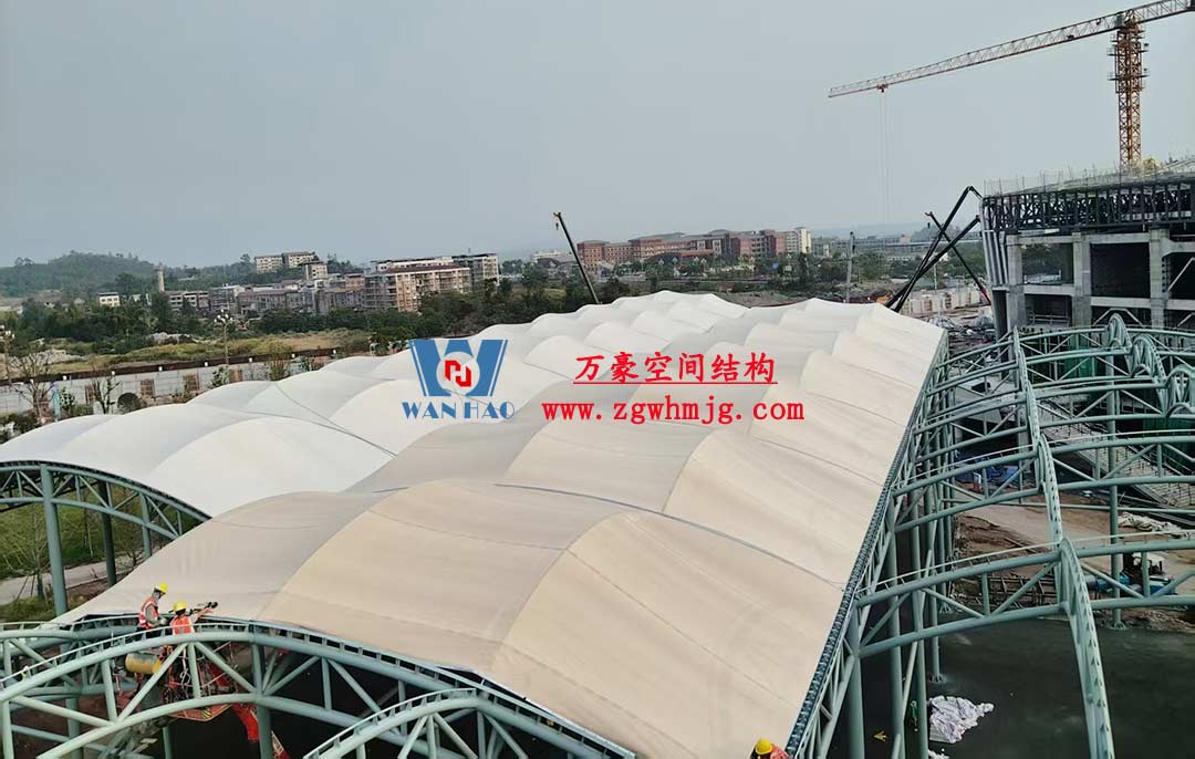 广安区官盛新区,是广安共享体育场的一部分,PTFE膜结构展开面积5500平方米