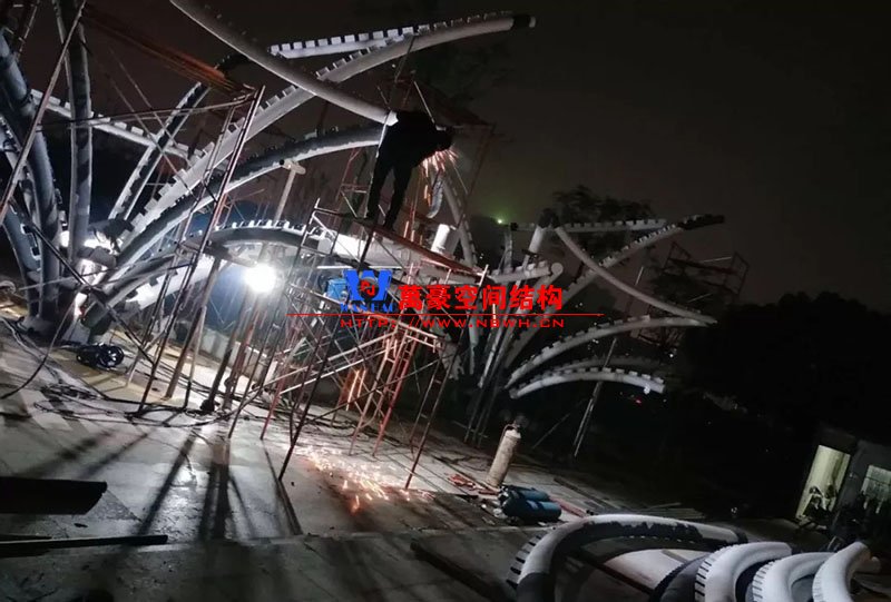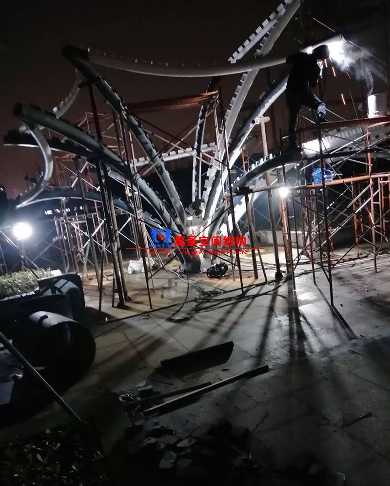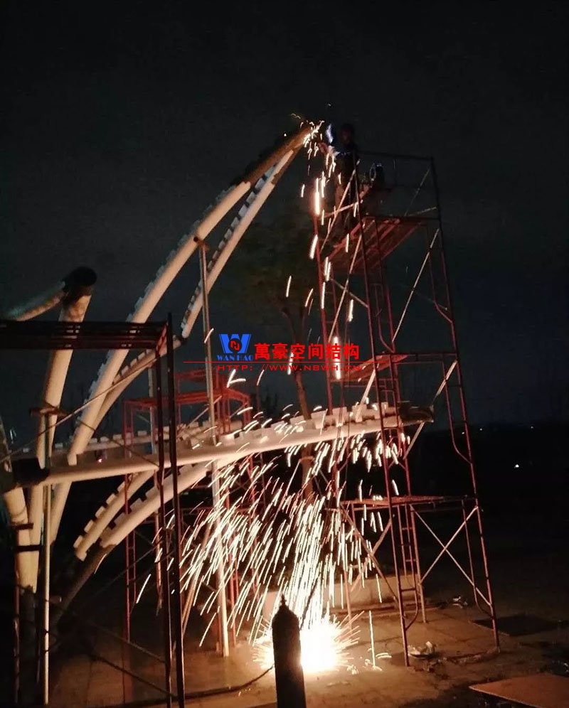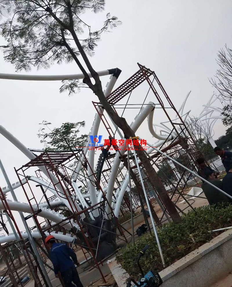 钢构安装初步完成,效果初现,膜结构开始安装。