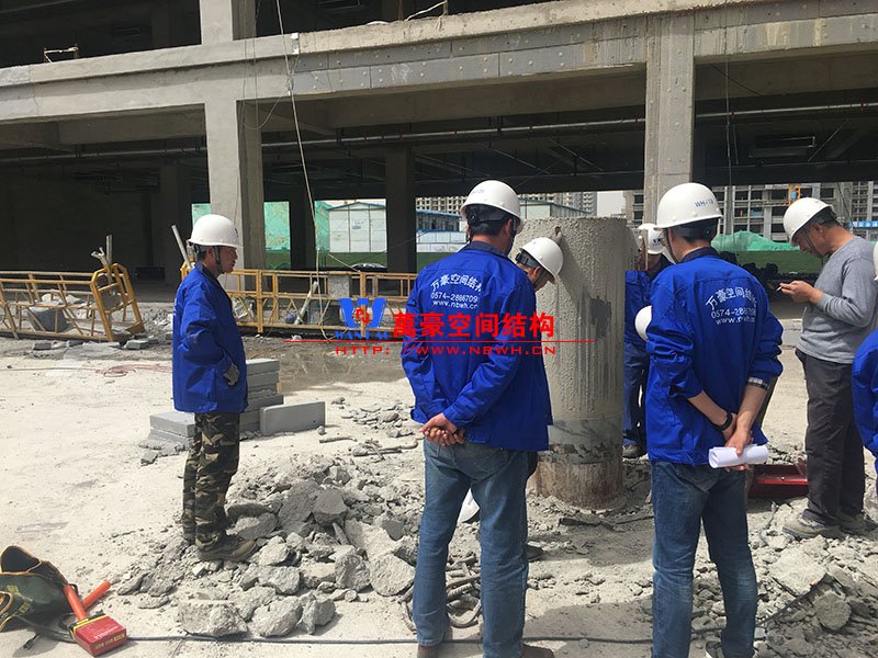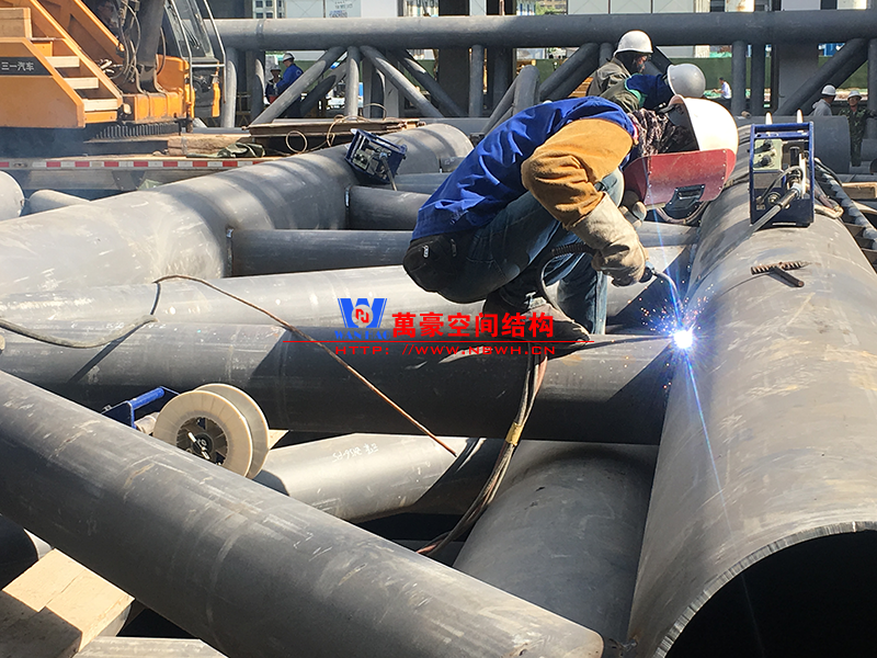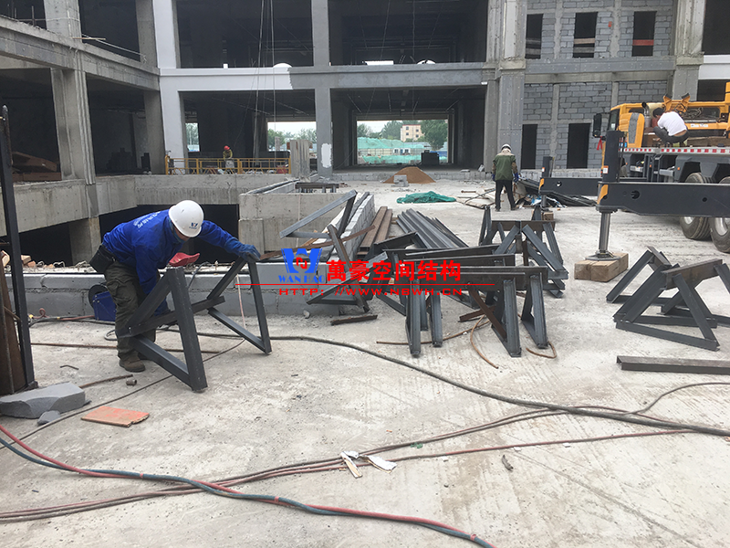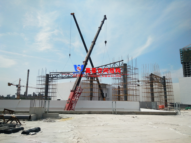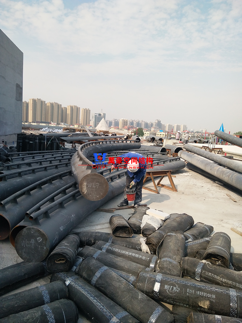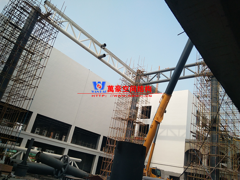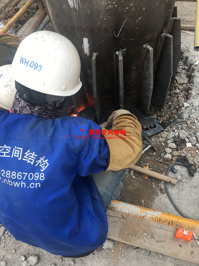 目前一号云朵钢柱立起3根,悬挑管架全部拼装完毕,桁架拼装完成;二号云朵钢柱立起3根,桁架、漏斗已基本到位,悬挑构件焊接中;三号云朵钢柱焊接中,隔板、环板正在有序拼装。