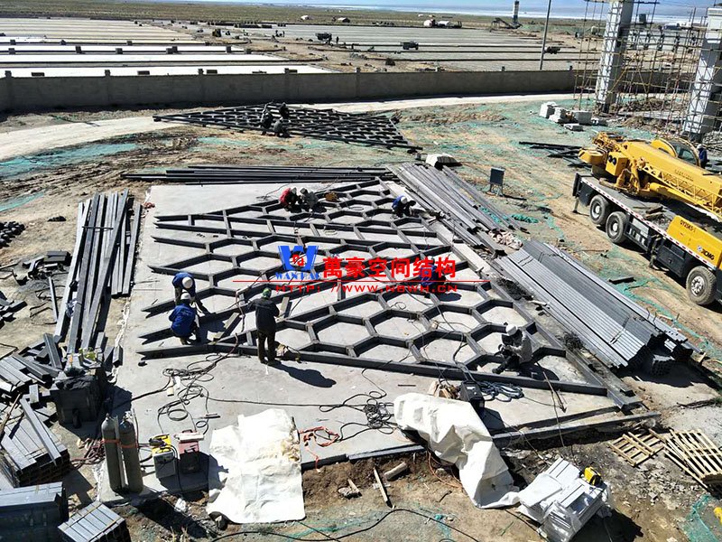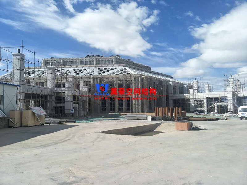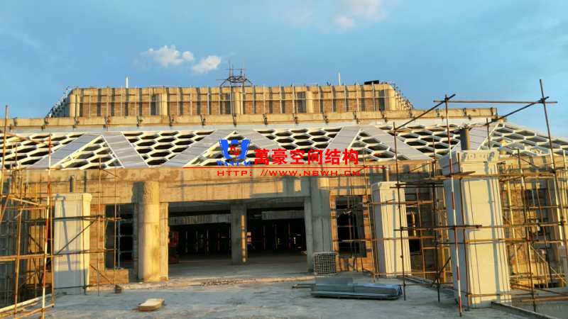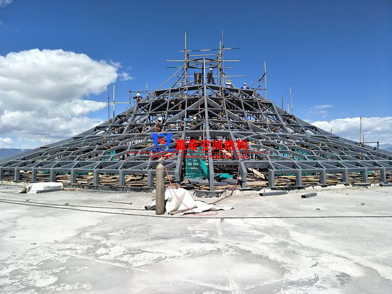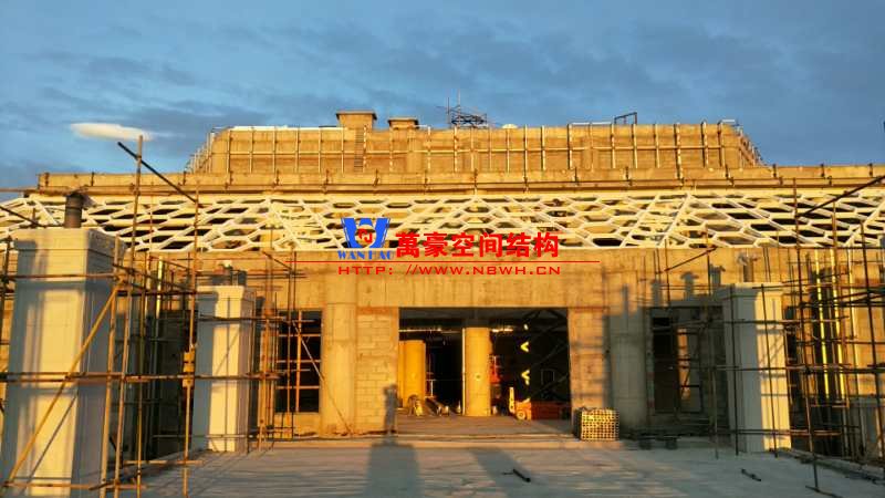 目前,观光塔钢膜结构项目架子已搭建完毕,接下来要做的是防护工作。综合办公楼钢膜结构项目穹顶钢构预计月底之前完成;斜屋面已做好三个面,其中两个面已做完油漆,预计七月中旬斜屋面钢构全部完成。