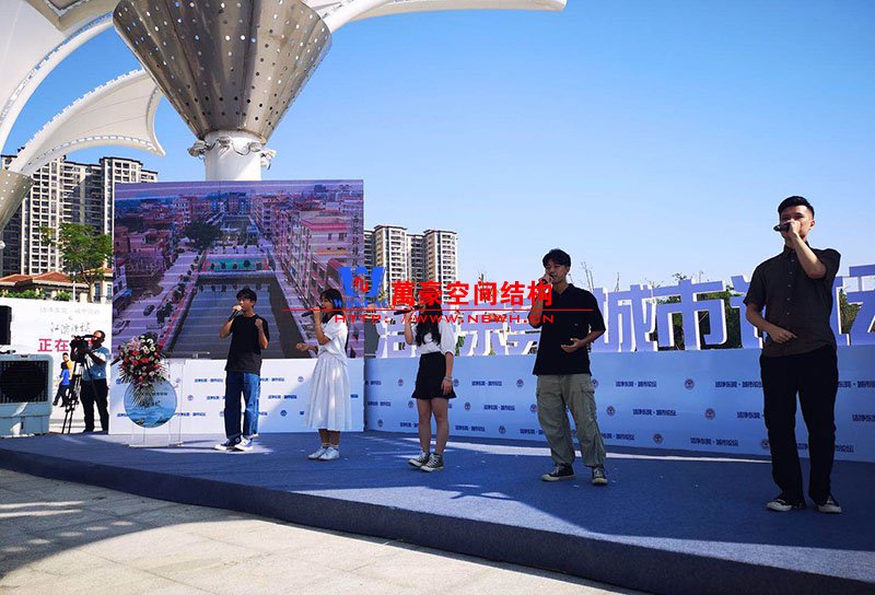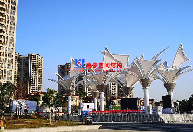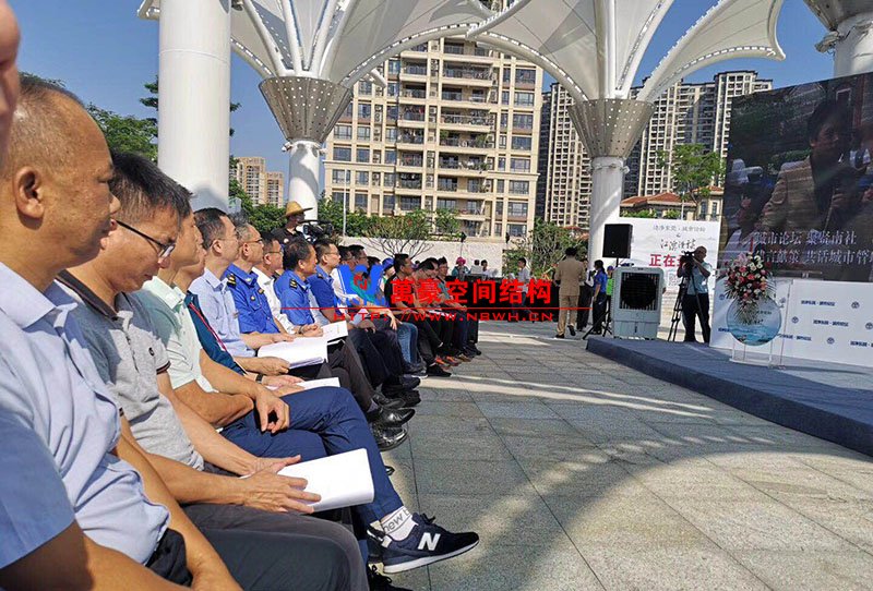 东莞龙舟广场网格覆膜景观膜结构竣工半年,本次迎来东莞论坛在景观膜朦胧照影下召开会议。 膜的效果非常好,看上去整洁漂亮,祝贺我司又添作品。