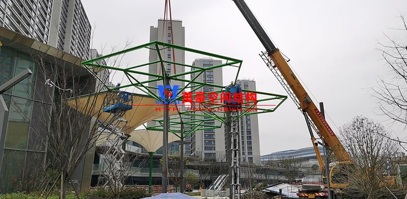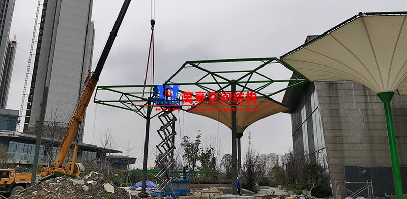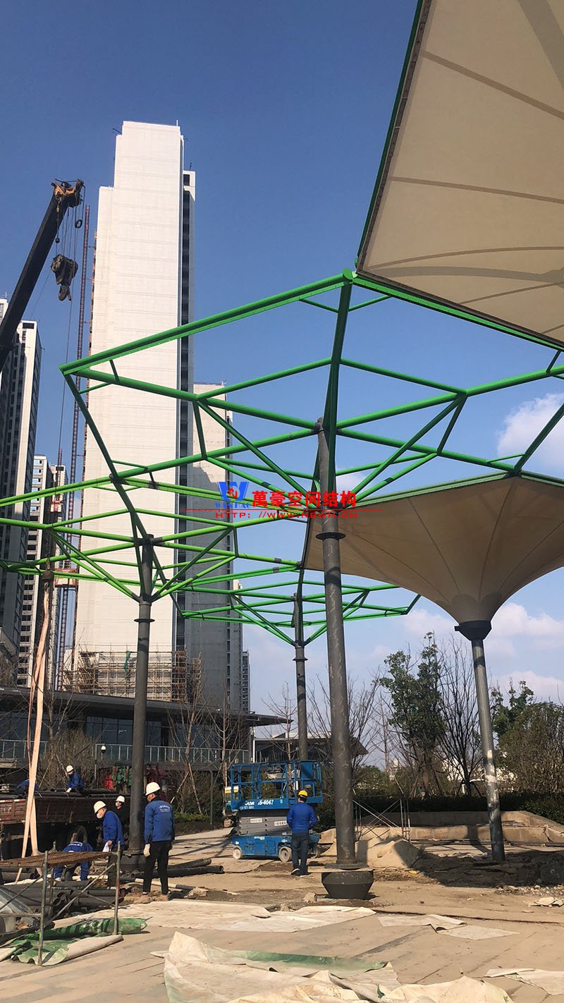 五乡地铁站伞状PTFE膜结构工程位于浙江省宁波市杨柳郡,项目由19座倒伞膜结构组成,倒伞寓意盛开的牵牛花。 该项目膜材使用进口PTFE膜材,膜结构展开面积5000平米,用钢量100吨,由宁波万豪空间结构工程有限公司承建。 目前,钢结构施工进入白热化阶段。期待整个工程的完工,来领略它独特的风采。