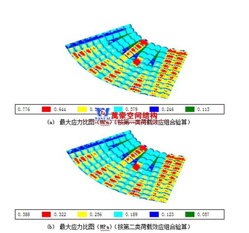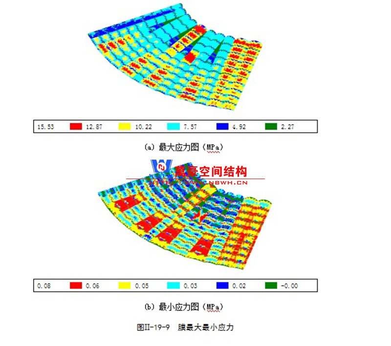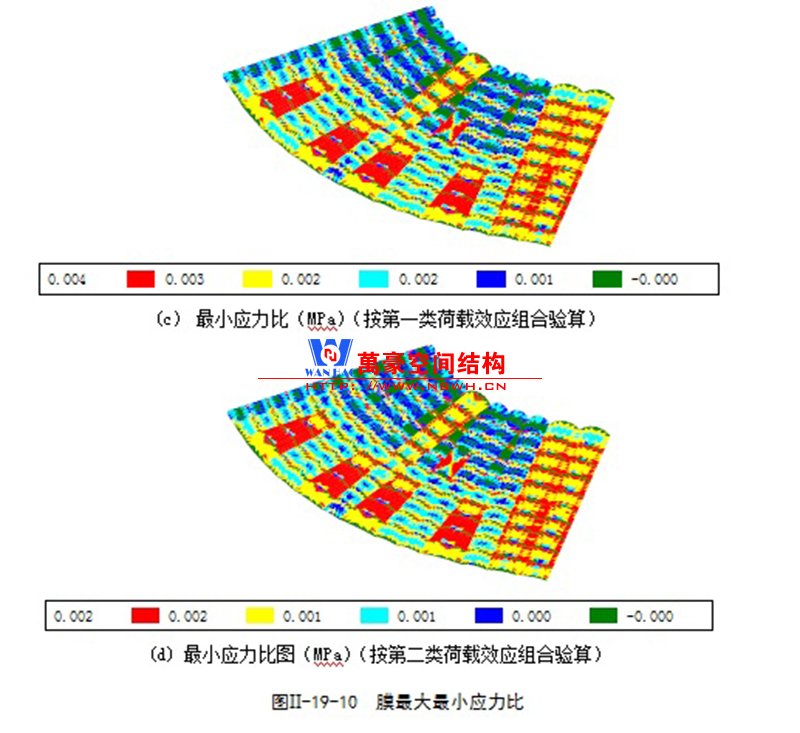 膜材强度设计值按第一类荷载效应组合验算取 20.0MPa,按第二类荷载效应组合验算取 40.0MPa。