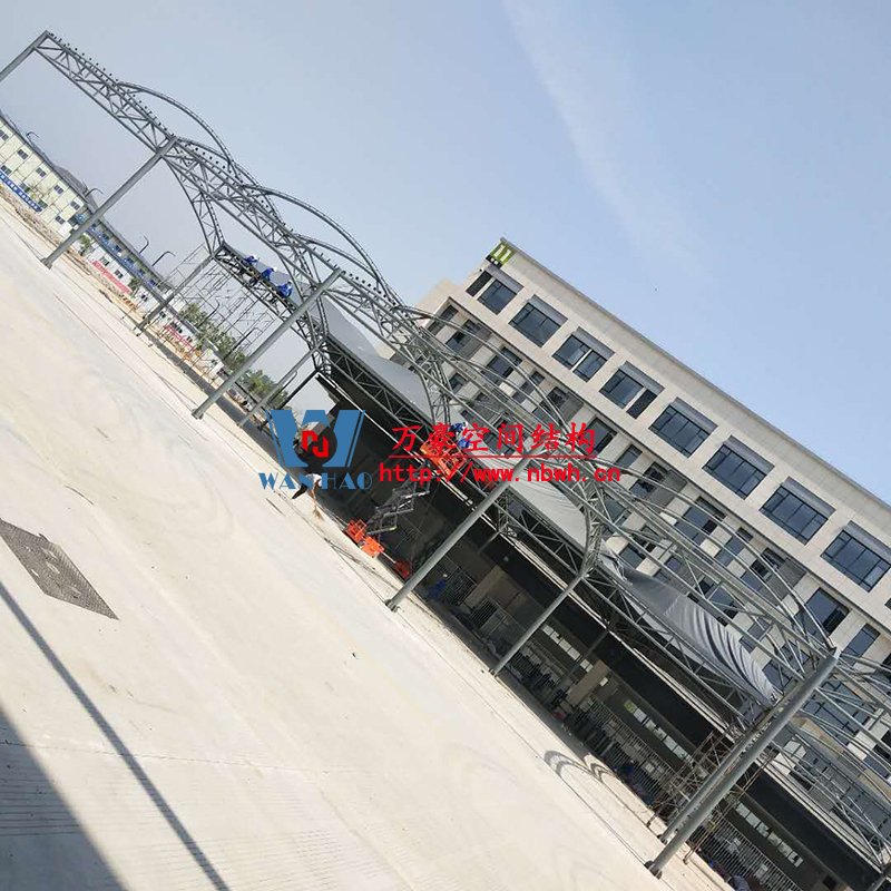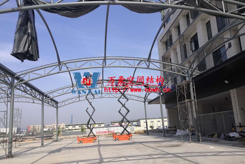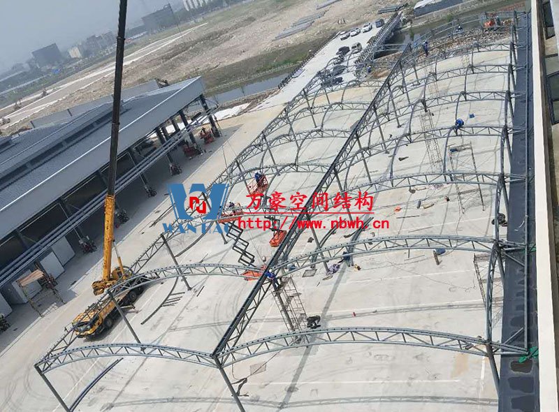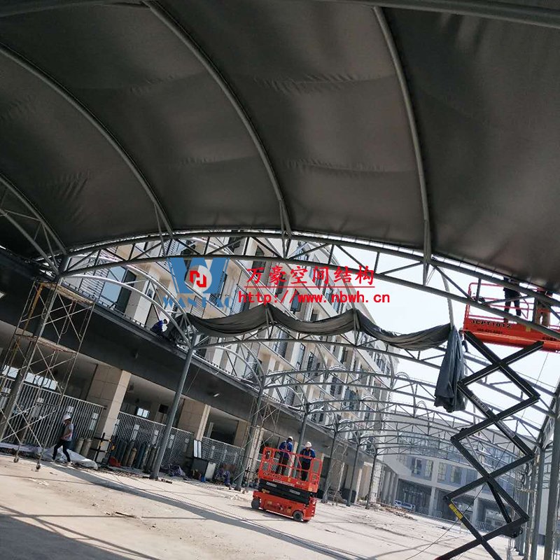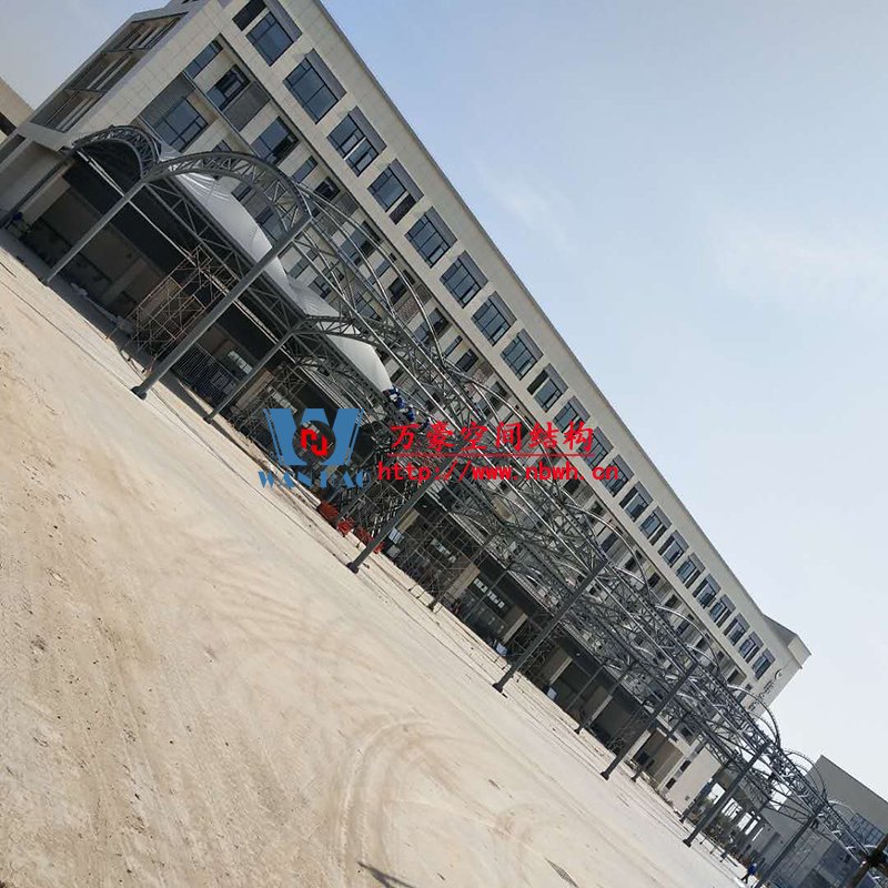 奉化方桥农副钢结构雨棚工程位于浙江省宁波市奉化市内,此工程用钢量100吨,膜结构展开面积3500平米,由宁波万豪空间结构工程有限公司承建。