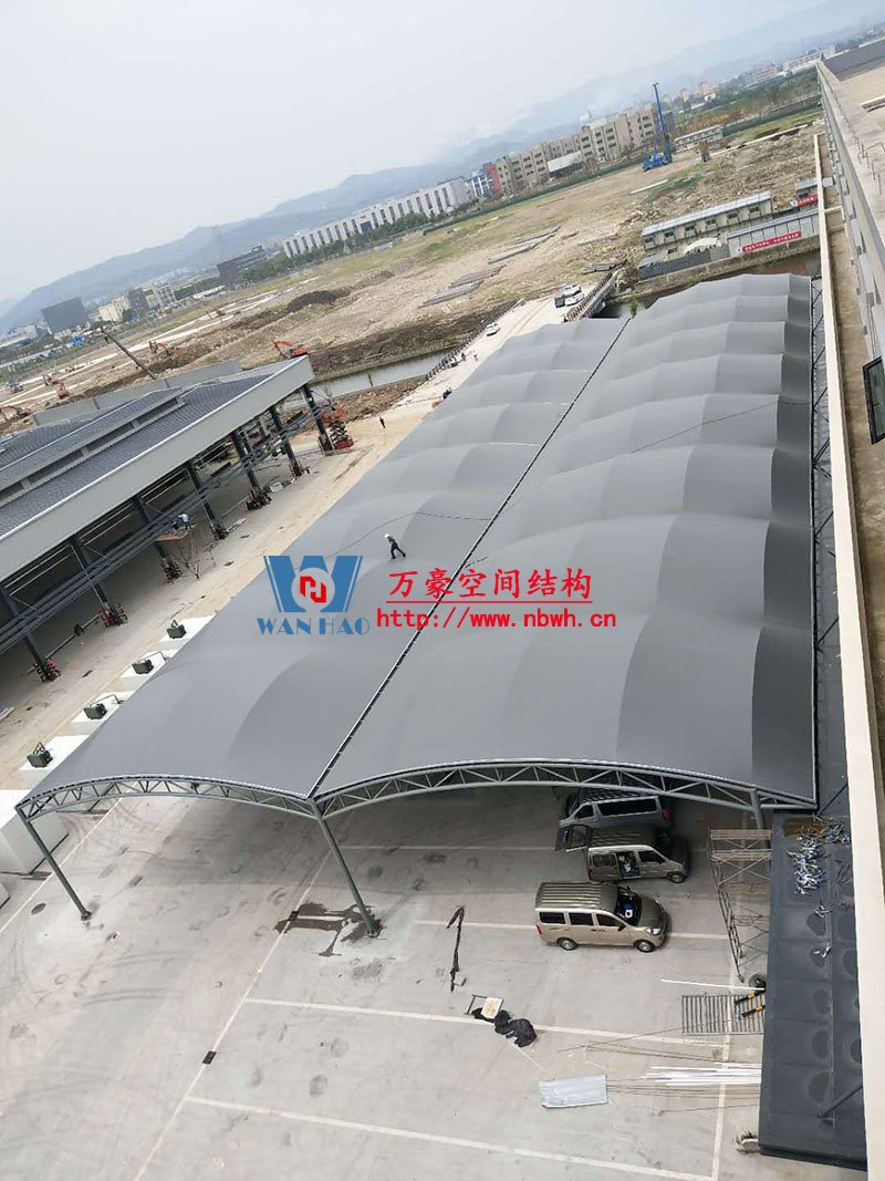 奉化方桥农副钢膜结构雨棚工程位于浙江省宁波市奉化市内,此工程用钢量100吨,膜结构展开面积3500平米,由宁波万豪空间结构工程有限公司承建。 一、图纸深化 二、现场施工 三、完美竣工