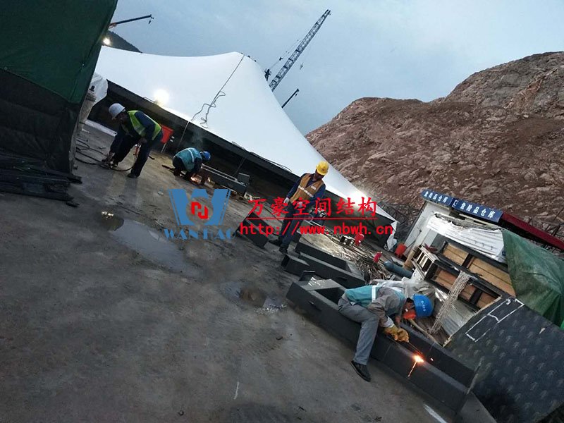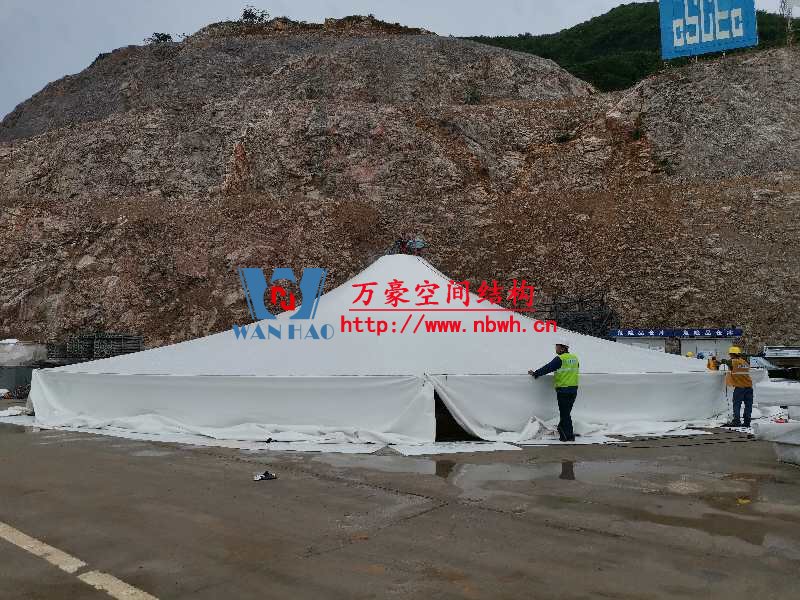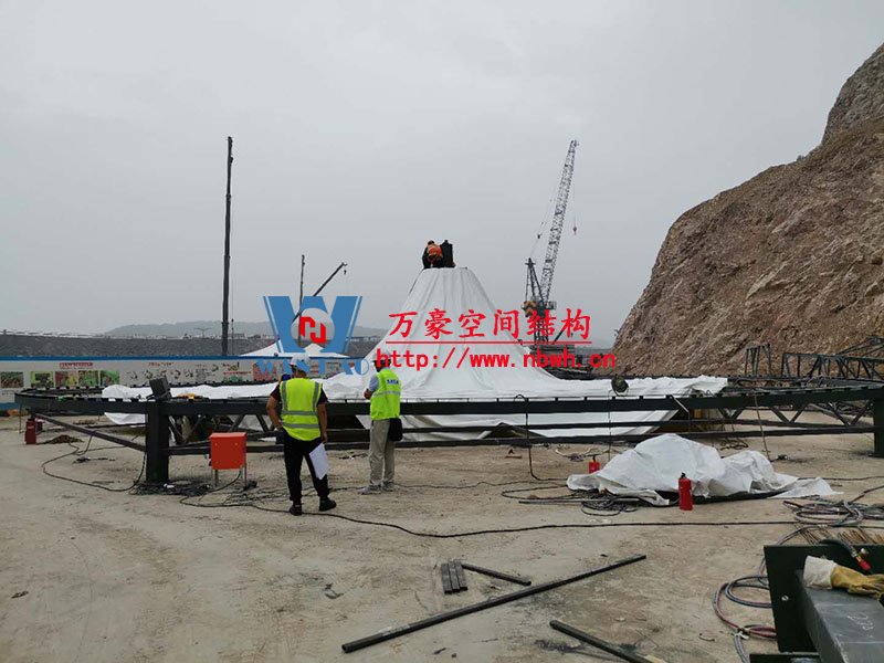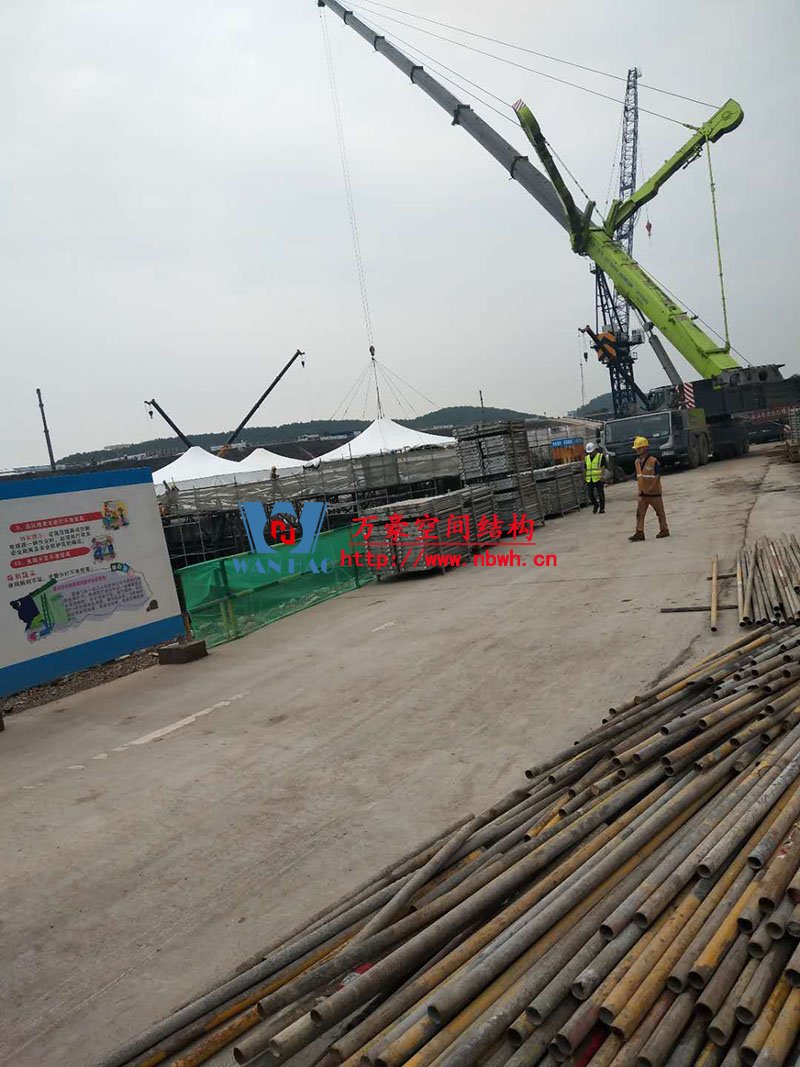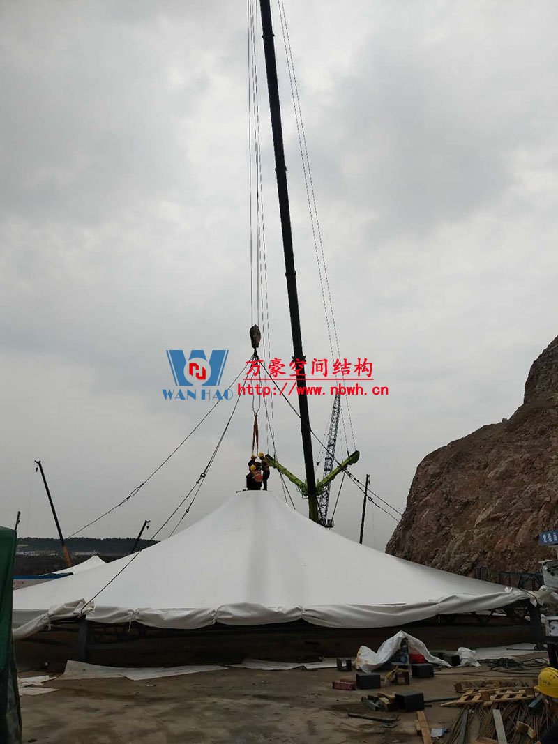 南京园博园穹盖式膜结构棚项目位于南京市江宁区汤山风景区,该工程由宁波万豪空间结构工程有限公司承建。 目前,第一个保温棚已经吊装到位,接下来第二、第三个棚按顺序拼装和安装。