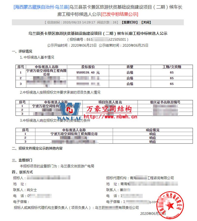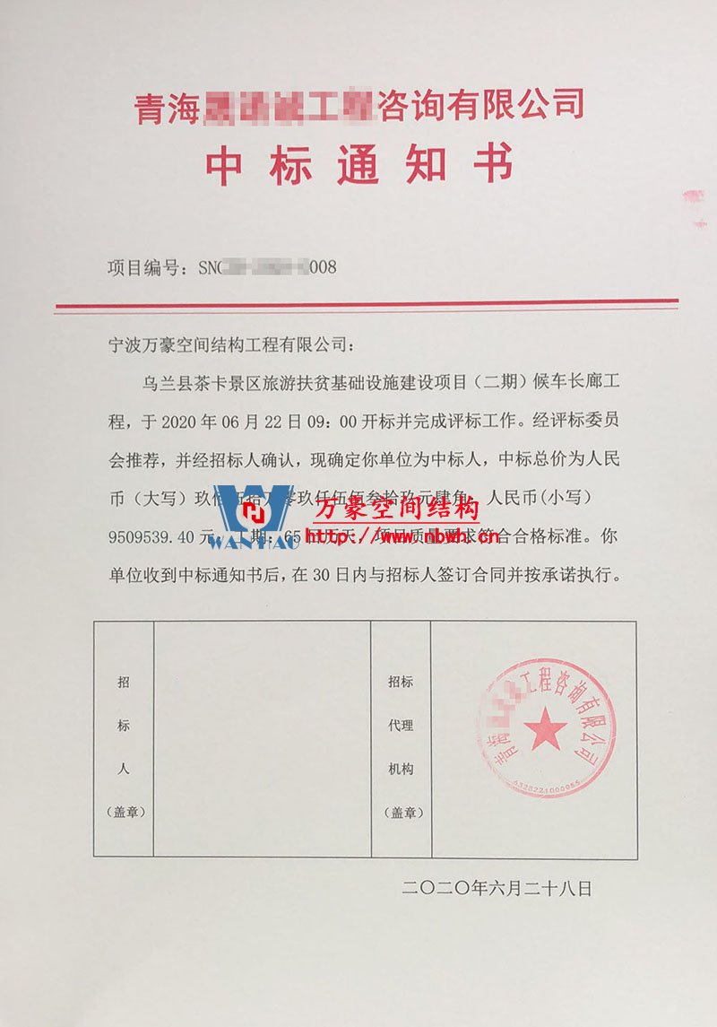 喜讯!!! 祝贺我司中标乌兰县茶卡景区旅游扶贫基础设施项目(二期)膜结构工程。 该项目位于青海省海西蒙古族藏族自治州乌兰县茶卡景区,工程用钢量200吨,膜结构展开面积6000平米,建成后将成为当地另一地标性建筑。 这是万豪2020年的第8标,万豪定当再接再厉,完美完成此次工程,大家拭目以待。