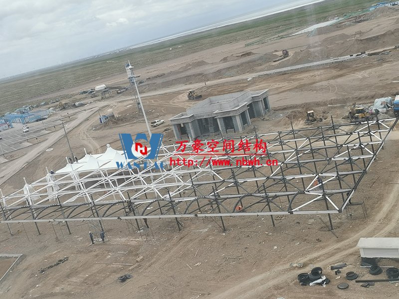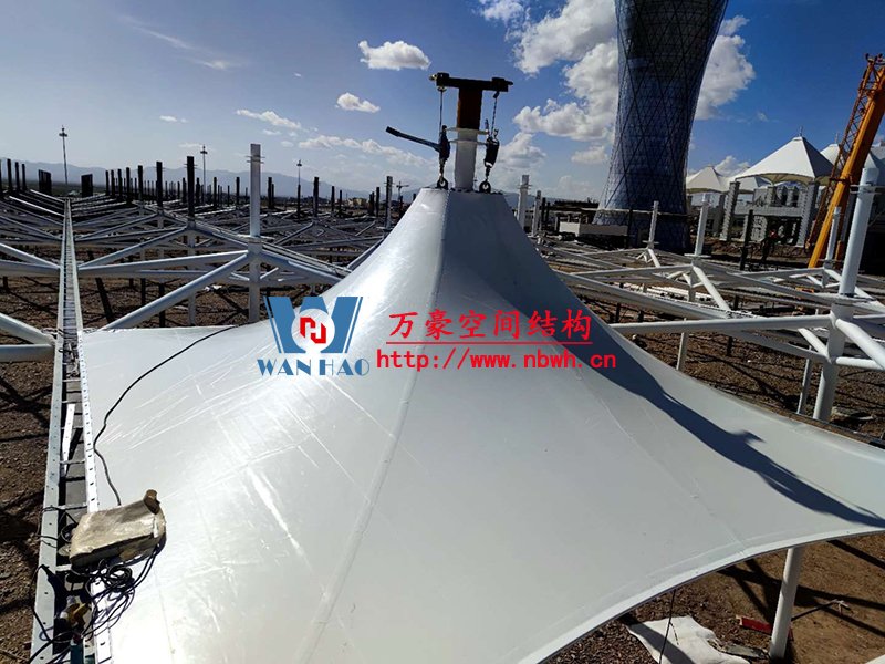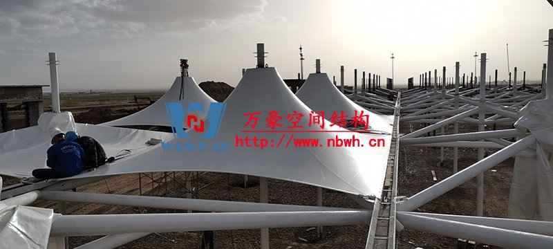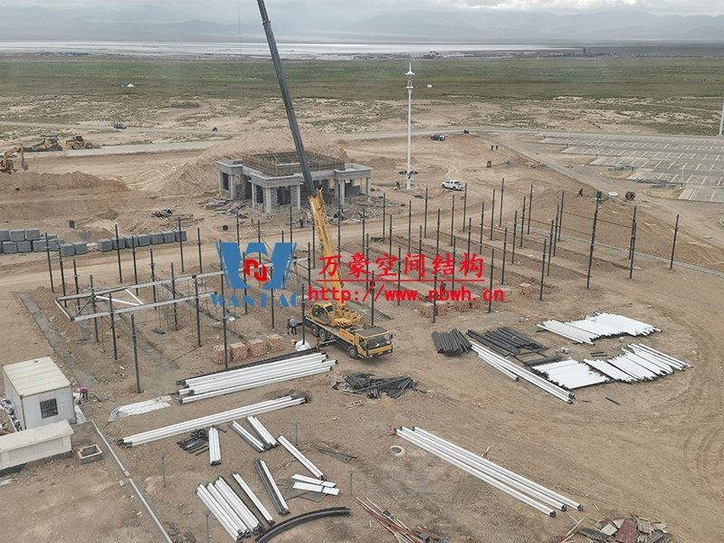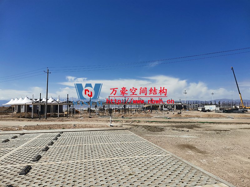 乌兰县茶卡景区旅游扶贫基础设施项目(二期)膜结构工程位于青海省海西蒙古族藏族自治州乌兰县茶卡景区,工程用钢量200吨,膜结构展开面积6000平米。 本工程分为东西两个区域(A1区、A2区)和不规则区域B区,共计占地4709.2平方米。 目前A1区钢结构主体施工完成,A2区钢结构柱施工完成,钢梁、水槽、斜撑正在施工,膜结构开始安装。 期待整个工程的完工,来领略它别致的风采。
