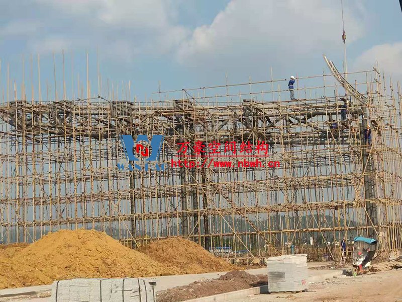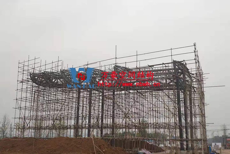 目前,南面的环梁已加焊完成,中间的圈梁加焊完成,北面五个环梁已吊装完成,加焊中,第六个环梁正在吊装中。