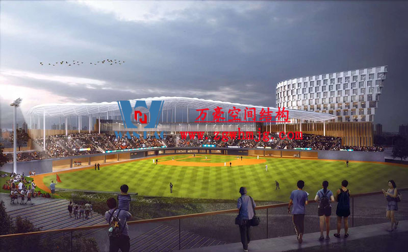杭州亚运会棒(垒)球体育文化中心项目位于浙江省绍兴市,总建筑面积16万平方米、总投资约18亿元。该项目顶部材料选用高自洁PTFE膜材,膜结构展开面积合计20000平米。