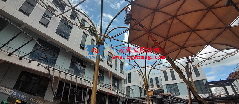 东盟特色商品汇聚中心膜钢构工程位于广西省南宁市良庆区利华路23号中新南宁国际物流园内,该项目用钢量260吨,ptfe膜结构展开面积3500平米,ETFE膜结构展开面积1500平米。