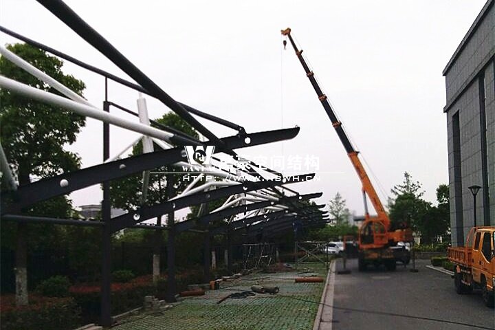 平湖市交投公司膜结构项目正在紧张有序地的施工中。