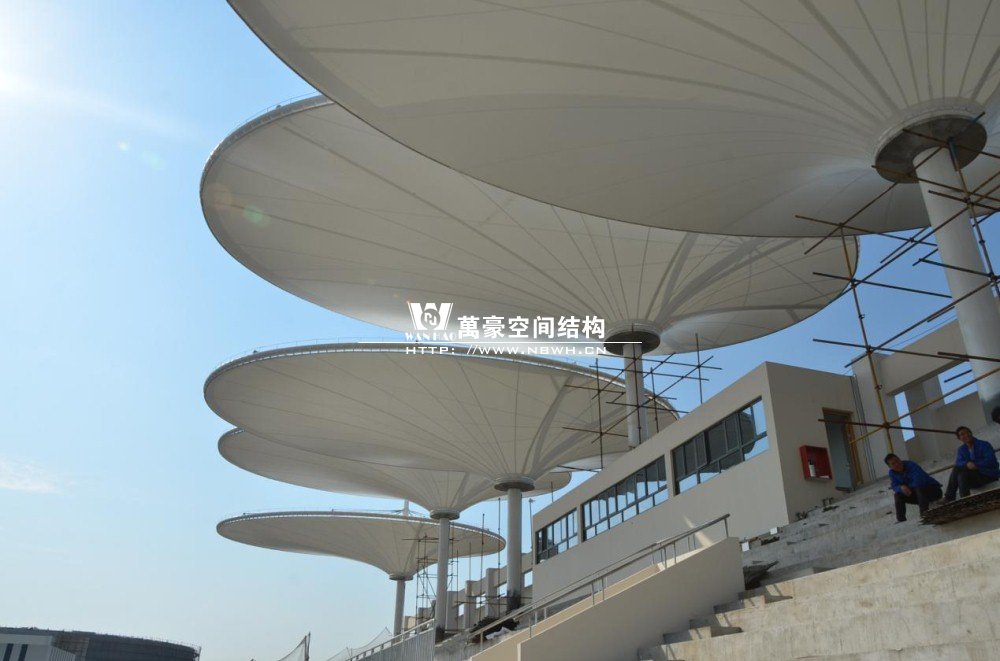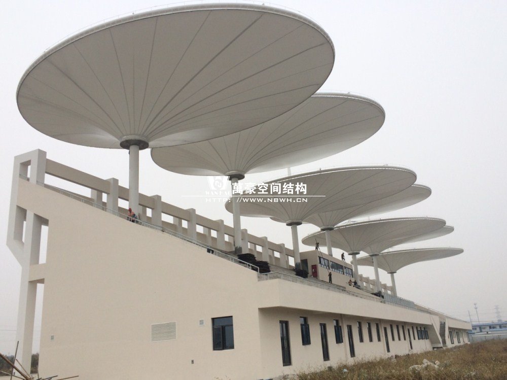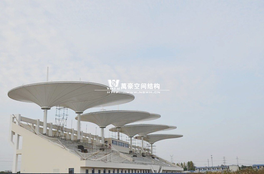 我公司有幸承接“常州大学西太湖校区体育看台项目”。项目位于常州市延政西路与丰泽路交叉口 (常州大学西太湖校区体育场内)。该工程钢结构用量153吨、膜展开面积3500㎡,膜材采用进口法拉利膜材。