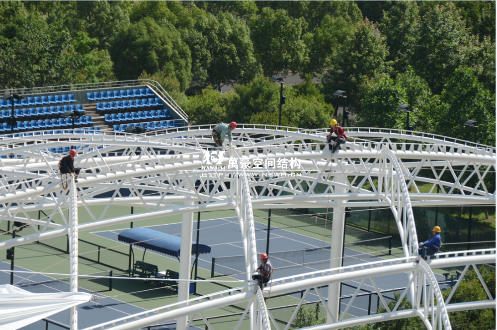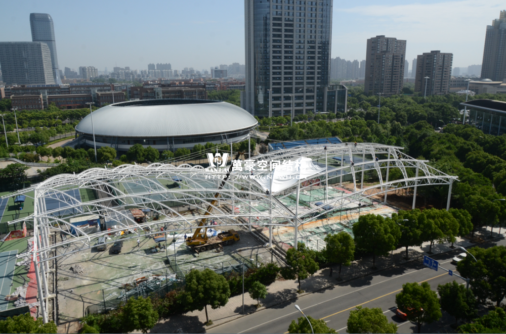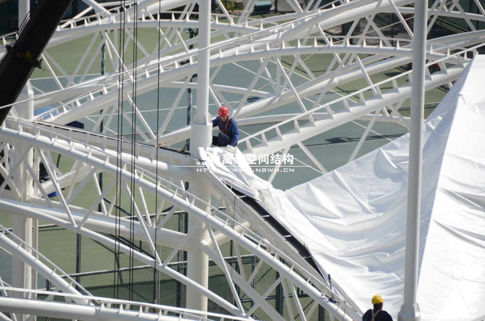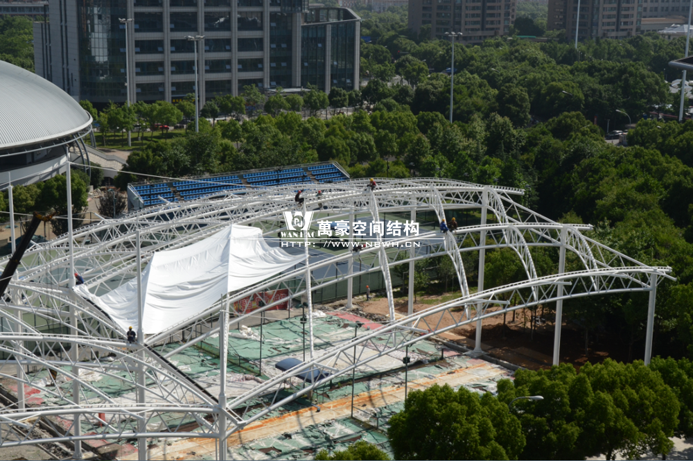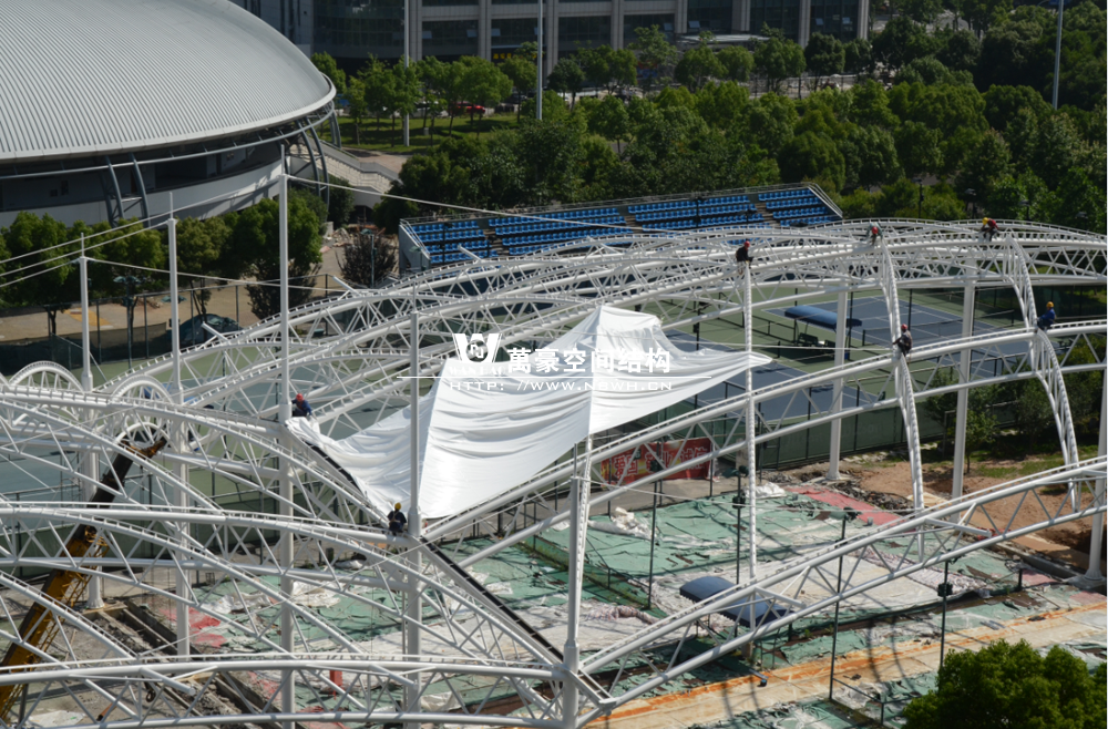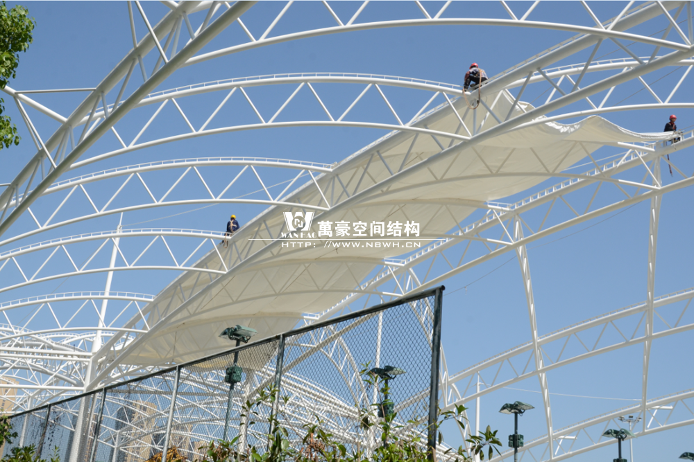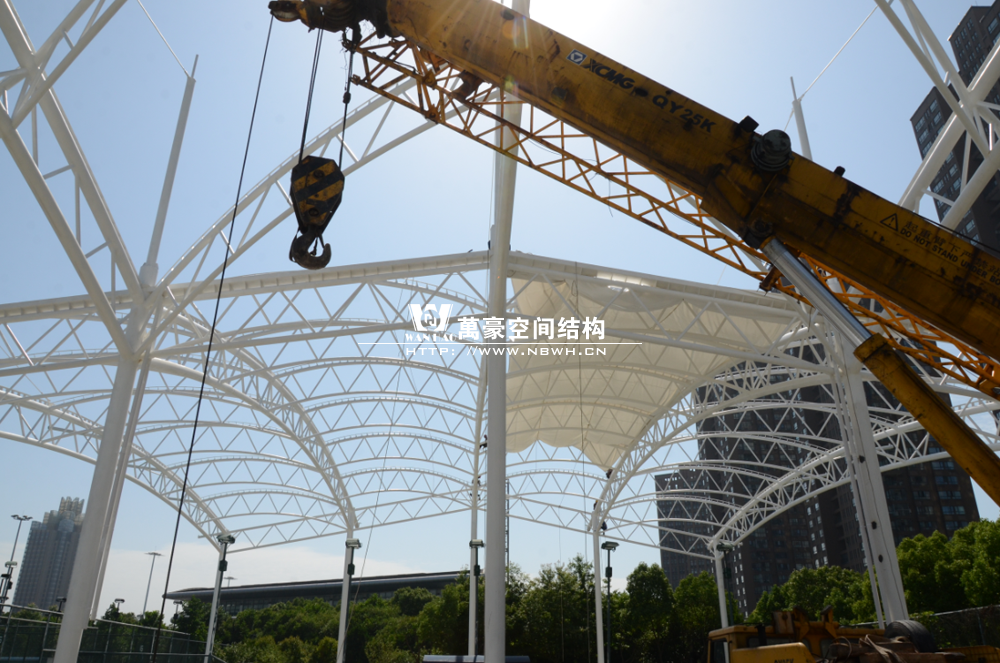 鄞州网球中心膜结构遮阳棚工程钢结构已完成并经初步验收