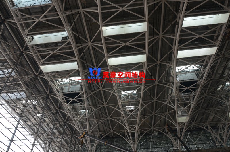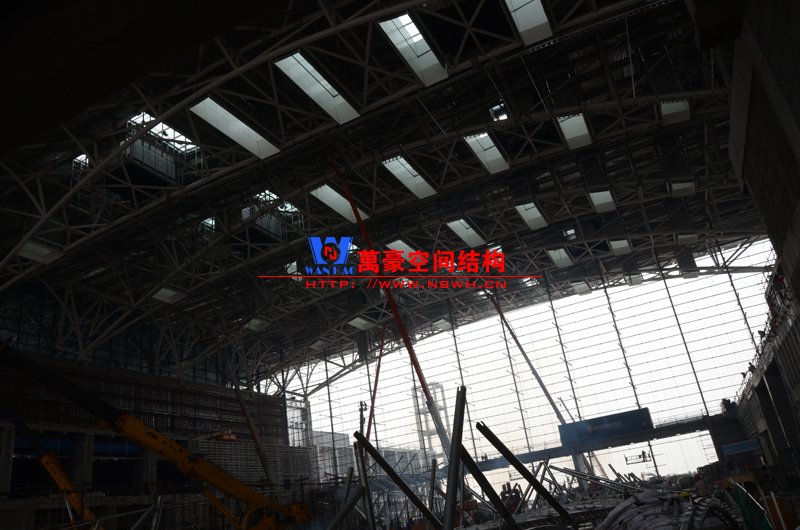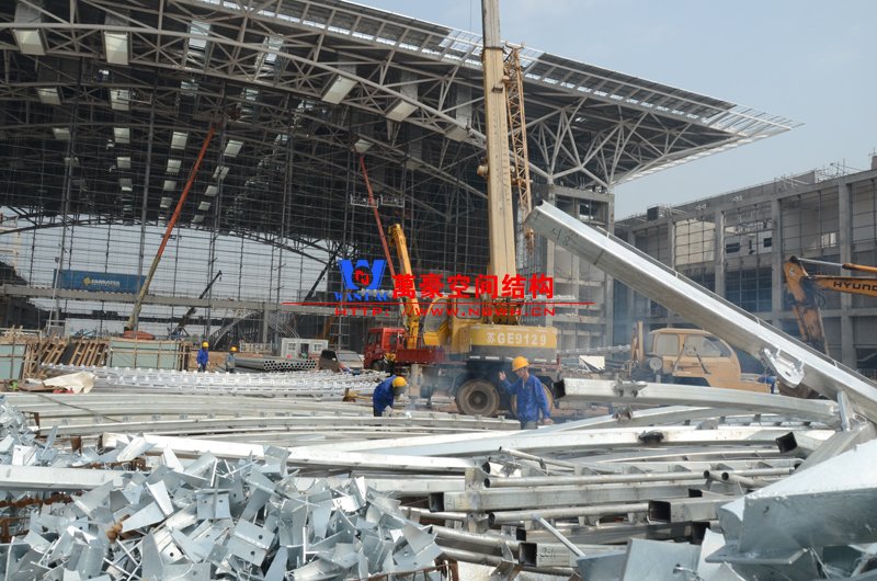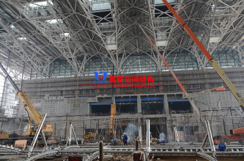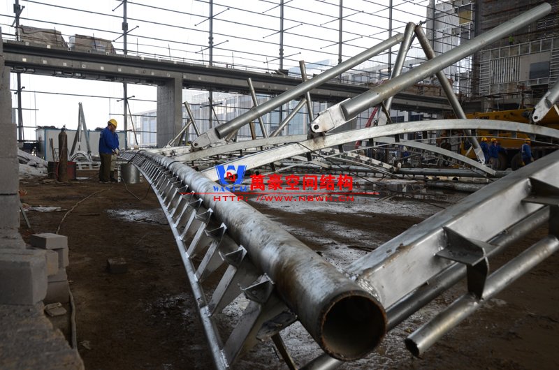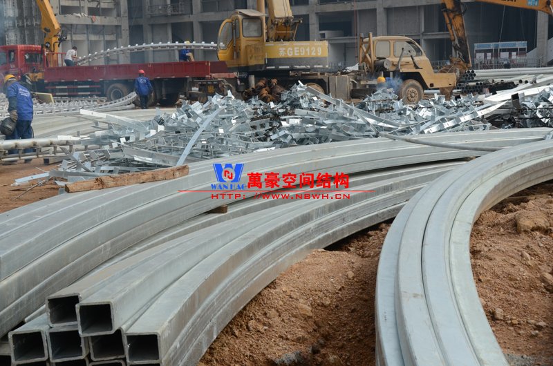 项目目前已进入现场火热拼装及吊装阶段。本项目用钢量大,施工节点多且复杂,是迄今为止,国内最大单体反吊膜结构。