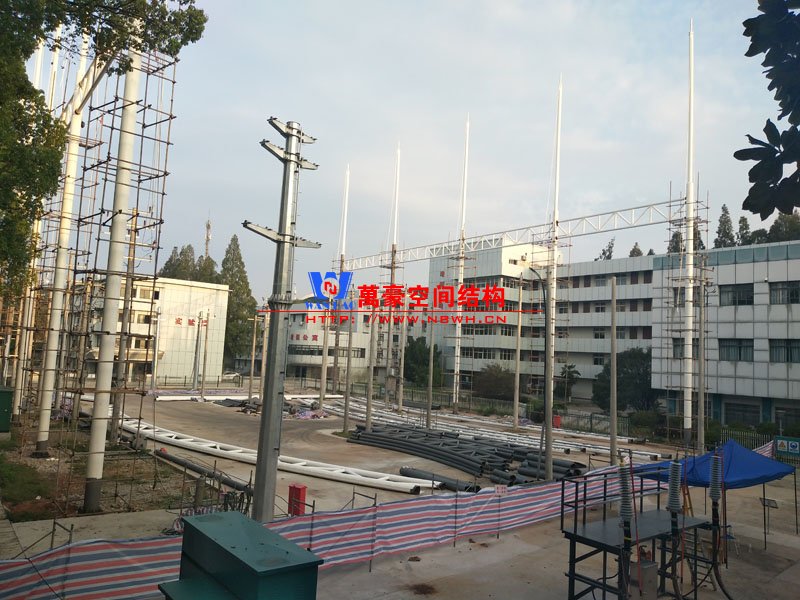 工程位于安徽省安庆市电力培训基地内,该工程用钢量150吨,膜结构展开面积3000平米,由宁波万豪空间结构工程有限公司承建。
