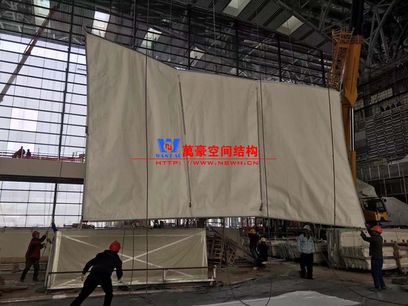 青岛国际会议中心幕墙膜结构进入内膜安装阶段