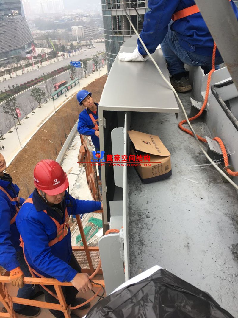 遵义这个项目是高空作业,所以有一定的危险性。特别是A区,据地有30多米,而且坡度非常的陡。每天在现场的时候,我们都要检查工人是否戴安全帽、安全带是否系好。因为安全无小事,做好安全措施,既是对自己的负责,也是对公司的负责。
